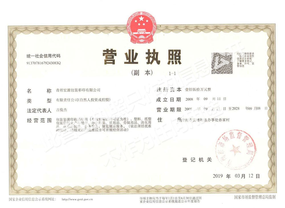 青州宏源包裝彩印有限公司